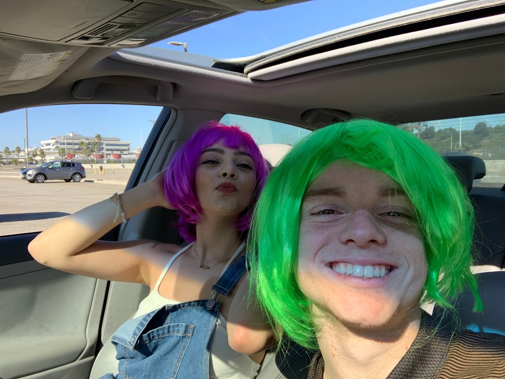 For this activity I decided to have fun and also get my girlfriend involved. Already having red hair which is pretty distinctive, I wanted to switch it up and go out of the box. My girlfriend and I went to a dollar store and found these fun wigs to wear. We later drove to the beach and spent the rest of the day there talking to strangers.